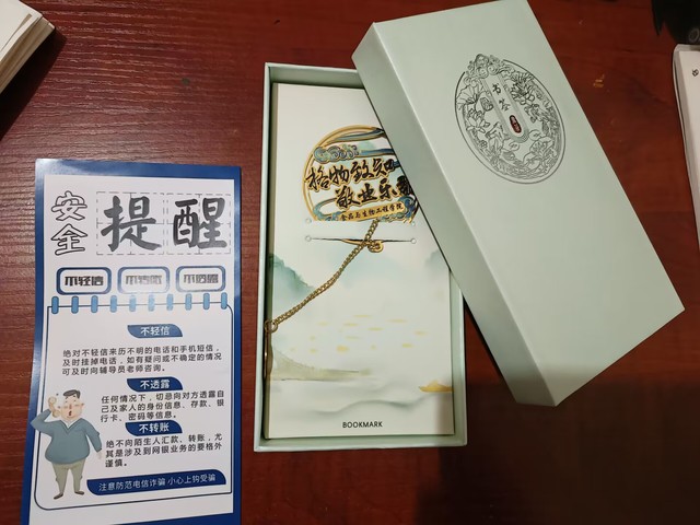 为了做好迎新工作,公司早早开始准备制定出了具体的方案,并让志愿者和工作人员熟悉了迎新的具体工作流程,其中尤其强调了对开学季新生预防诈骗工作的宣传。在此次迎新工作中,公司为激励新生在新的环境中保持积极的心态,奋发向上,努力学习,特地为每一位大一新生准备了一份精美书签(图一、图二),其中在每一份书签礼物中都附带了一张预防诈骗的安全提醒(图三),以加强新生对开学季预防诈骗的重视,提高防范意识。