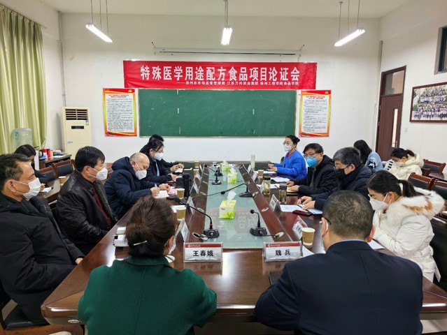 1月5日上午,由市市场监管局牵头,江苏万邦医药股份有限公司、伟德体育联合研发特殊医学用途配方食品的项目论证会在伟德bevictor召开。市市场监管局党委委员、副局长卜军及特殊食品和化妆品安全监督管理处相关负责人,江苏万邦医药副总裁孙宏建及市场营销部门相关负责人,徐州龙肽医学实验室负责人,公司伟德bevictor刘恩岐经理、陈宏伟副经理及相关科研负责人等参加了论证会。
