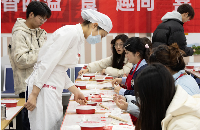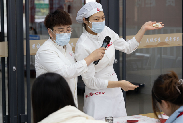 活动分为“质量组”和“速度组”两个部分。喜家德水饺门店大师在比赛前向参赛同学悉心传授包饺子手法及注意事项,还为参赛同学配备了包饺子围裙、擀面杖等参赛工具,活动现场气氛热烈而紧张。同学们都力求在速度的基础上保证质量,其中有些同学动作敏捷,眨眼间就包好了好几个饺子。师傅们评判的标准十分细致,从饺子的外观形状是否美观对称、饺子皮的厚度是否均匀适中,到馅料的饱满程度和分布均匀性等多方面进行考量。