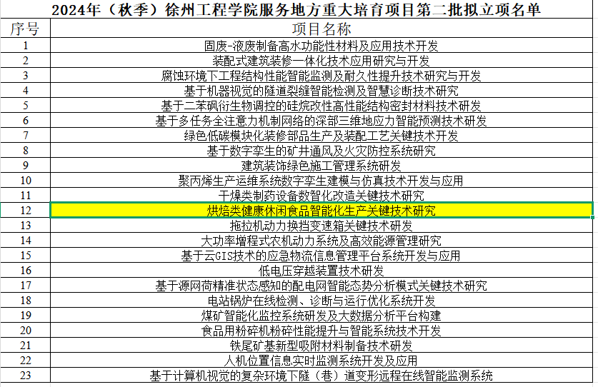 2024年(秋季)伟德体育服务地方重大培育项目第二批拟立项名单